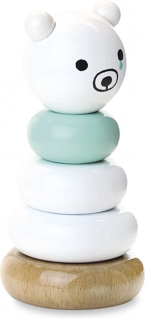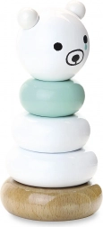 Acest turn elegant de stivuire cu ursuleț, în combinație alb–mentă și decor din lemn natural, este o primă jucărie educativă ideală. Copiii exersează ordonarea corectă a inelelor, diferențierea mărimilor și ritmul mișcărilor, în timp ce culorile blânde și expresia drăgălașă a ursulețului stimulează curiozitatea și joaca liniștită.
