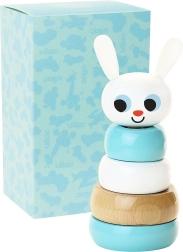 Turnul de stivuire pentru copii Vilac Iepuraș este o jucărie stilată care îi va încânta atât pe cei mici, cât și pe părinți. Datorită inelelor din lemn solide, copiii își exersează motricitatea fină, răbdarea și gândirea logică. Aspectul minimalist cu accente retro al ilustratoarei suedeze Ingela P. Arrhenius îl transformă și într-un frumos accesoriu pentru camera copilului.