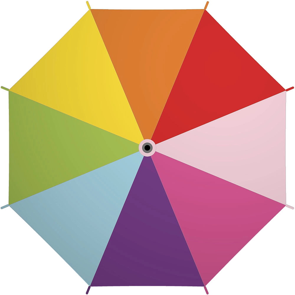 Combinația veselă de culori îmbunătățește vizibilitatea și transformă umbrela într-un accesoriu preferat pentru orice zi ploioasă.