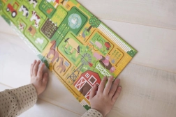 Descoperiți lumea fermei cu un set creativ care îmbină asamblarea și un joc de căutare distractiv. După asamblarea puzzle-ului lung, copiii urmează traseele cu degetul, exersând coordonarea mână–ochi și, în același timp, caută în imagine 20 de obiecte. Activitate ideală pentru momente petrecute împreună cu copiii sau pentru joc individual.