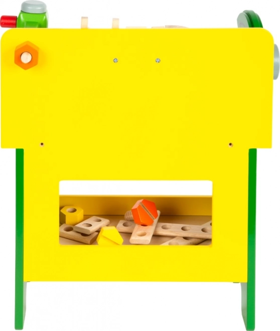 Construcția solidă din lemn de calitate, cu lac colorat, garantează stabilitate și o durată lungă de utilizare. Bancul este proiectat cu accent pe siguranță și învățare prin joacă – o jucărie ideală pentru jocuri de rol, dezvoltarea gândirii tehnice și a imaginației.