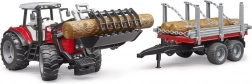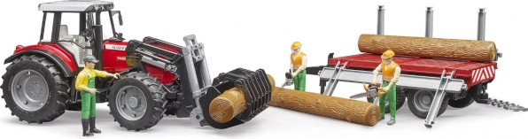 Setul BRUDER aduce tractorul iconic MASSEY FERGUSON 7480 cu încărcător frontal și remorcă pentru lemn pentru un joc cât mai realist. Datorită detaliilor funcționale, precum capota motorului care se deschide, axa față direcționabilă și anvelopele moi, copiii se descurcă ușor cu încărcarea și transportul buștenilor.