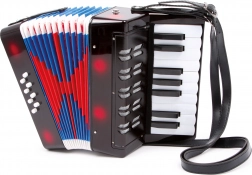 Corpul lăcuit lucios și burdufurile colorate motivează la joacă și dezvoltă relația cu muzica încă de la vârste fragede.