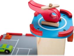 Acest parcare de lemn de la Small Foot oferă o experiență completă de joacă pentru copiii dumneavoastră. Setul include nu doar parcarea cu trei etaje, dar și un lift care permite transferul mașinilor între niveluri și un heliport ideal pentru toți micii piloți.