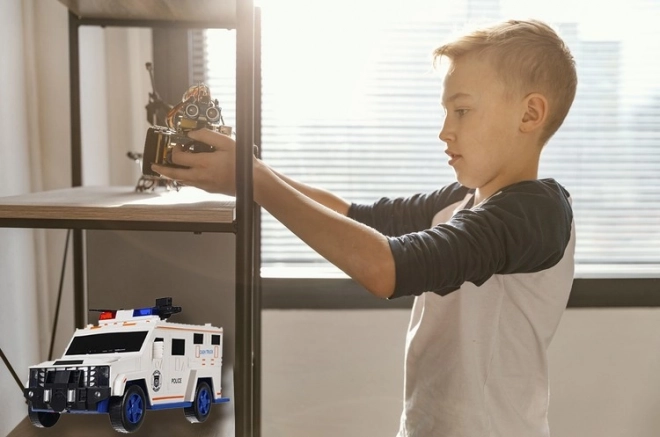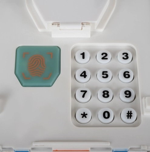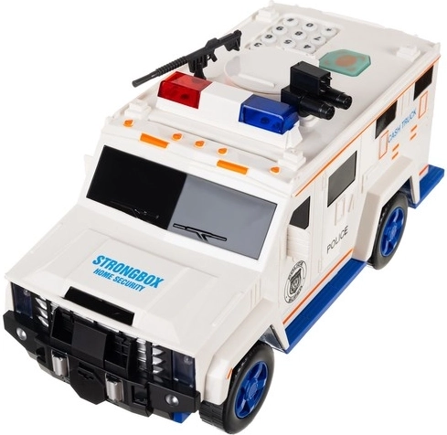 Pușculiță pentru copii cu parolă și amprentă - mașină de poliție – Albă