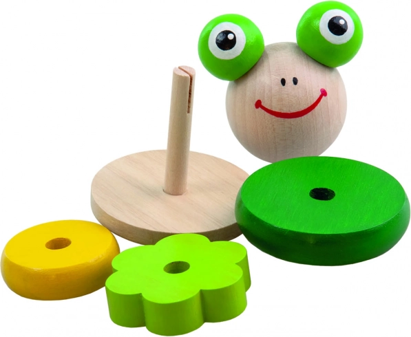 Piramidă balansare Broscuță este o jucărie minunată din lemn pentru dezvoltarea motricității și imaginației copiilor mici. Este compusă din 4 piese care se înșiră și o piesă de bază din lemn cu un stick, care face ca piesele să sară și să se rotească într-un mod distractiv.