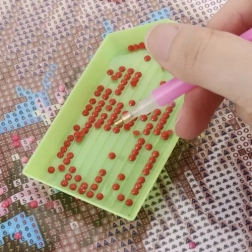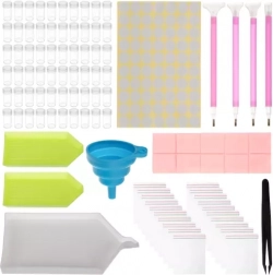Pentru lucru confortabil, setul include 4 aplicatoare de dimensiuni diferite, pensetă precisă, 3 tăvițe de sortare și pâlnie pliabilă din silicon pentru transferul ușor al pietricelelor fără dezordine. Pătrățelele de ceară asigură preluarea sigură a pietricelelor, iar spatula de aliniere ajută la un rezultat perfect drept.