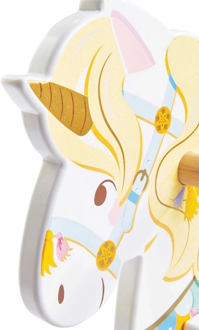 - Unicorn de carusel, detalii colorate, corn auriu