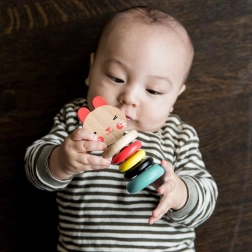 Oferă-i bebelușului tău o jucărie sigură și stimulatoare senzorial. Zornăitoarea din lemn în formă de iepuraș emite, la o scuturare ușoară, un sunet plăcut de bătaie, care liniștește și susține percepția auditivă. Datorită dimensiunilor compacte, zornăitoarea se ține excelent în mână și dezvoltă motricitatea fină și coordonarea mână-ochi.
