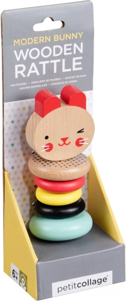Zornăitoare adorabilă din lemn în formă de iepuraș de la Petit Collage, care încântă bebelușii cu un sunet blând și liniștitor. Are cinci inele netede din fag ideale pentru mânuțele mici, culori și modele vii pentru dezvoltarea simțurilor și este realizată din lemn 100% certificat FSC cu vopsele pe bază de apă netoxice.