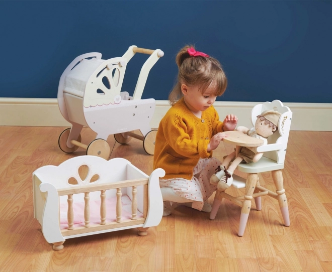 Scaunul din lemn pentru păpuși oferă o opțiune ideală pentru a dezvolta imaginația copilului și a-i implica în jocuri de rol. Datorită designului său stilat cu detalii ornamentale și lucrătură de calitate, oferă o experiență realistă. Este potrivit pentru plușuri și păpuși până la 35 cm și completează perfect alte accesorii din colecția Honeybake, cum ar fi pătuțul Sleigh și căruciorul Sweet Dreams.