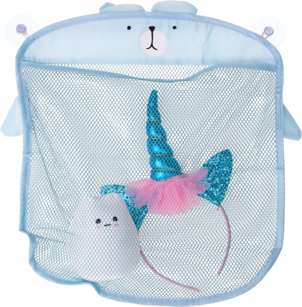 Acest organizator albastru este ideal pentru băile cu copii – atrage prin designul jucăuș, motivează la ordine și menține spațiul curat. Buzunarul încăpător din plasă găzduiește jucăriile de baie și mici accesorii pentru baie și se usucă rapid după utilizare.