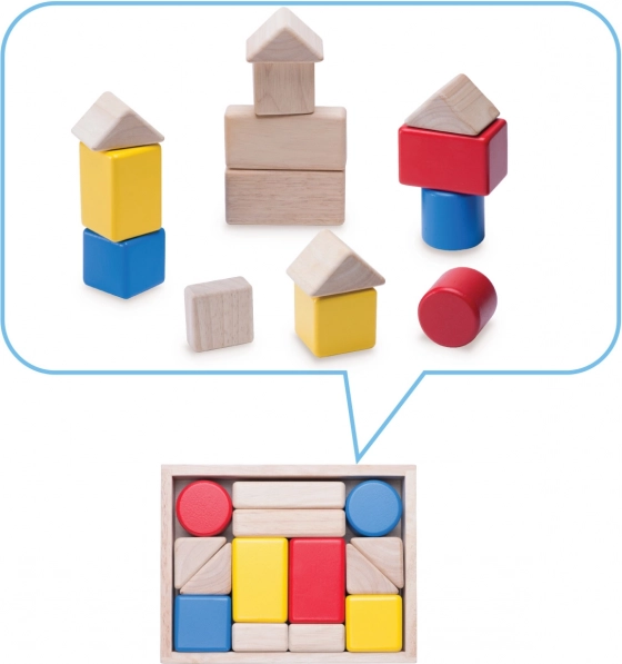 Cuburile din lemn au forme plăcut rotunjite și o finisare rafinată, astfel încât se țin confortabil chiar și de cele mai mici mânuțe. Materialele rezistente și execuția de calitate asigură o durată de viață lungă și joacă sigură. Datorită dimensiunilor compacte, setul este grozav atât pentru acasă, cât și în călătorii.