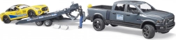 Acest set realist de la BRUDER combină robustul pick-up off-road RAM cu o remorcă de transport și o mașină sport galbenă cu acoperiș detașabil. Include și o figurină șofer, astfel încât poți porni imediat la curse sau să transporți mașina pe circuit. Execuția precisă, elementele funcționale și plasticul rezistent asigură durabilitate și o experiență de joacă excelentă.