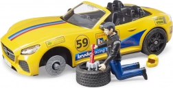 Mașina sport galbenă cu numărul 59 și acoperiș detașabil aduce un aspect și funcții inspirate din curse. Ideală pentru scenarii de service și competiții.