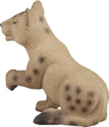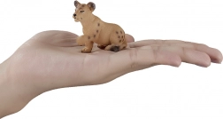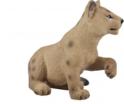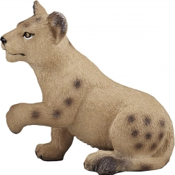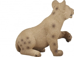 Figurina surprinde puiul de leu într-o poziție naturală, cu textură fină a blănii și pete autentice, specifice puilor.