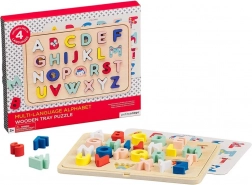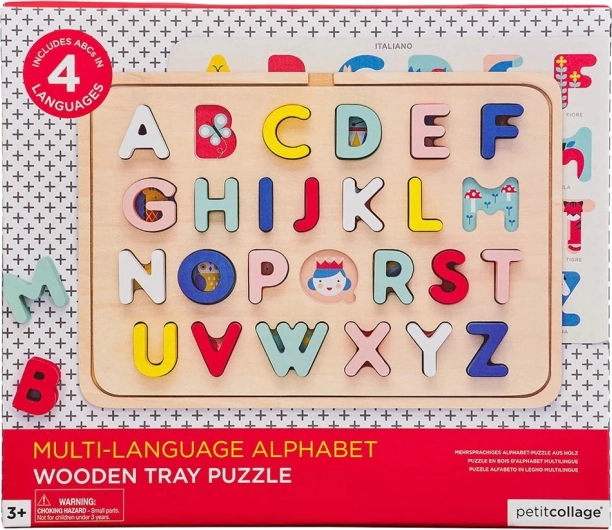 Acest set ingenios și jucăuș îmbină învățarea cu distracția. Fiecare literă, la ridicare, dezvăluie o ilustrație tematică corespunzătoare literei – astfel copiii fixează literele și, în același timp, descoperă cuvinte în engleză, franceză, italiană și germană. Piesele au margini plăcut rotunjite pentru o prindere sigură de către mânuțele mici.