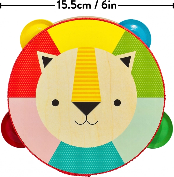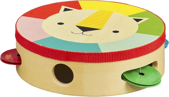 Această tamburină din lemn de înaltă calitate, din placaj de plop, îi va încânta pe micii muzicieni și pe părinții lor. Prinderea ușoară și confortabilă, vopselele vegetale sigure și lacul pe bază de apă asigură o joacă fără griji. Motivul vesel cu leu și culorile vii susțin percepția ritmului, a culorilor și dezvoltarea abilităților motorii.