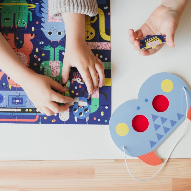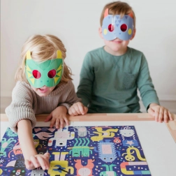 Descoperiți lumea jucăușă a festivalului de monstruleți, unde copiii se cufundă mai întâi în asamblarea puzzle-ului colorat, apoi își pun măștile 3D speciale pentru a dezvălui obiecte ascunse. Jocul îmbină inteligent distracția cu învățarea și dezvoltă concentrarea, răbdarea și percepția vizuală.