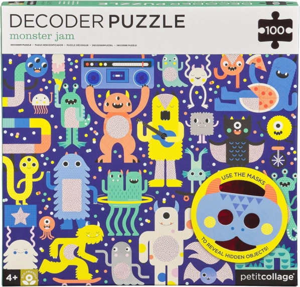 După asamblarea imaginii, pe micii detectivi îi așteaptă o misiune: pot găsi 5 dulciuri, 4 obiecte cu roți, 3 pălării, 2 instrumente muzicale și 1 lucru urât mirositor? Datorită materialelor de calitate din hârtie certificată FSC și imprimării cu culori netoxice, jocul este sigur și prietenos cu mediul.
