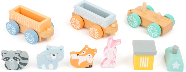 Trenulețul din lemn este o distracție grozavă pentru copiii de la 18 luni. Acest set minunat conține vagoane colorate, ușor de conectat, și patru figurine drăgălașe - vulpe, iepure, raton și urs. Locomotiva și vagoanele sunt fabricate din lemn de calitate și proiectate astfel încât să fie sigure pentru cei mai mici copii. Datorită culorilor pastelate și construcției simple, acest set este ideal pentru dezvoltarea imaginației și a abilităților motorii ale copilului dvs.