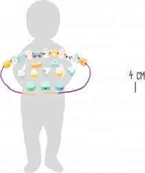 Capătul din lemn al șnurului facilitează înșirarea și consolidează coordonarea mână–ochi și dexteritatea degetelor.