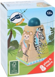 Ilustrațiile colorate cu tematică de junglă îi motivează pe copii să caute ordinea corectă, astfel încât imaginile de pe laterale să se potrivească – o formă jucăușă de antrenament al logicii și imaginației.