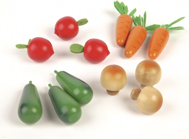 Setul conține o selecție de legume îndrăgite – morcovi, dovlecei, roșii și ciuperci – așezate într-o lădiță rezistentă din lemn. Totul este realizat cu grijă din materiale de calitate și obținute responsabil, sigure pentru jocul copiilor.
