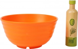 Pregătiți o salată ca adulții! Acest set de calitate SMALL FOOT include roșii, ceapă, avocado, castravete și salată verde, toate din lemn solid, ușor de manevrat de către copii. Amestecați totul în bolul din plastic rezistent și asezonați cu „ulei de măsline”. Ideal pentru joacă împreună și învățare despre alimente sănătoase.