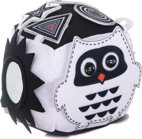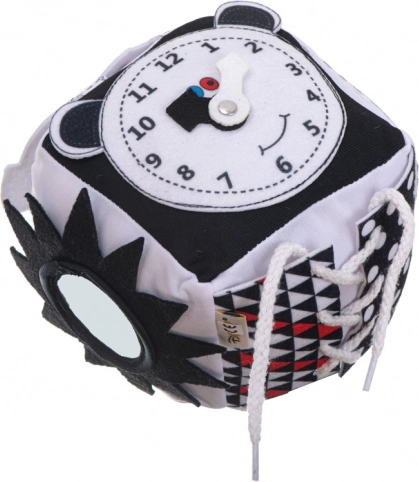 Acest cub senzorial moale va face fiecare zi a micului dumneavoastră explorator minunată. Modelele contrastante și culorile alb-negru stimulează vederea, în timp ce diversele texturi ajută la dezvoltarea simțului tactil. Cubul este echipat cu o zornăitoare și elemente crepitante, care captează auzul și celor mai mici.