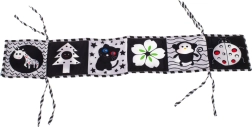 Datorită șnururilor practice, cartea se poate fixa ușor de pătuț sau cărucior, facilitând utilizarea ușoară atât acasă, cât și în deplasare.