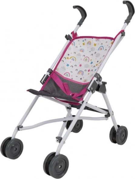Acest cărucior pliabil pentru păpuși, în stil tip umbrelă, este o alegere grozavă pentru joaca zilnică, acasă și în aer liber. Designul curcubeu oferă jucăriei un aspect vesel și stimulează imaginația copiilor, în timp ce dimensiunile practice asigură o manevrare ușoară pentru cei mai mici.