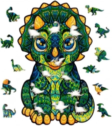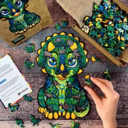 Fiecare piesă și combinație de culori sunt special concepute pentru copii. Din cele 100 de piese din lemn de calitate, 17 piese se disting prin formele lor originale cu tematică din era dinozaurilor.