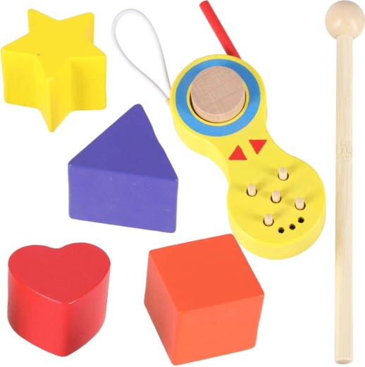 - Lemn, vopsele netoxice; lamele metalice ale xilofonului