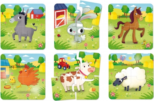 - 6 imagini din mediul fermei alcătuite din 24 de piese mari – ideale pentru primele încercări de asamblare.