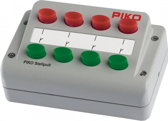 Panoul de control analogic de la Piko permite control simplu și eficient al luminilor și schimbătoarelor pe trenul dvs. model. Este echipat cu patru comutatoare cu două butoane, care vă permit să gestionați clar diferite ieșiri, de la lumini până la schimbătoare.