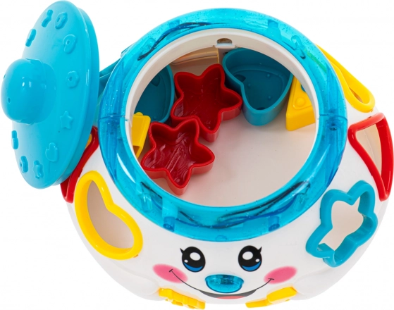 - Vine cu 6 blocuri de diferite forme pe care copilul trebuie să le potrivească corect.