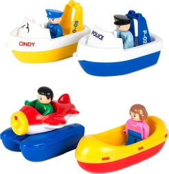 Sunt incluse 41 de piese, printre care 4 figurine și accesorii: bărcuțe, barcă de poliție, hidroavion și plută. Ideal pentru joacă împreună și inventarea de povești.