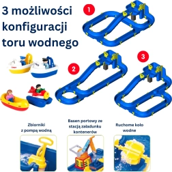 Setul se montează ușor – etanșarea nu necesită lipire, astfel încât vă puteți apuca rapid de joacă. Materialul durabil este rezistent la apă și potrivit pentru utilizare în exterior. Setul este compatibil cu LEGO DUPLO, astfel încât puteți extinde scenariile de joc și construi propriile lumi acvatice. Posibilitatea de a asambla 3 configurații diferite ale pistei aduce provocări și idei mereu noi.