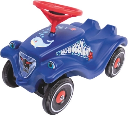 Mașinuța clasică de împins BIG Bobby Car Classic, într-o nuanță unică de albastru cu motiv de delfin, oferă o poziție ergonomică, o construcție stabilă și calitate superioară, fabricată în Germania. Datorită claxonului de pe volan, centrului de greutate coborât și rotițelor față pivotante, deplasarea este sigură și distractivă. Potrivită de la 12 luni, capacitate maximă 50 kg.