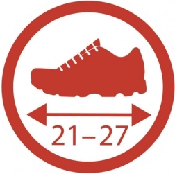 Curelele și forma elastică permit o montare ușoară pe diferite modele de încălțăminte pentru copii și o prindere fiabilă chiar și la mers alert.