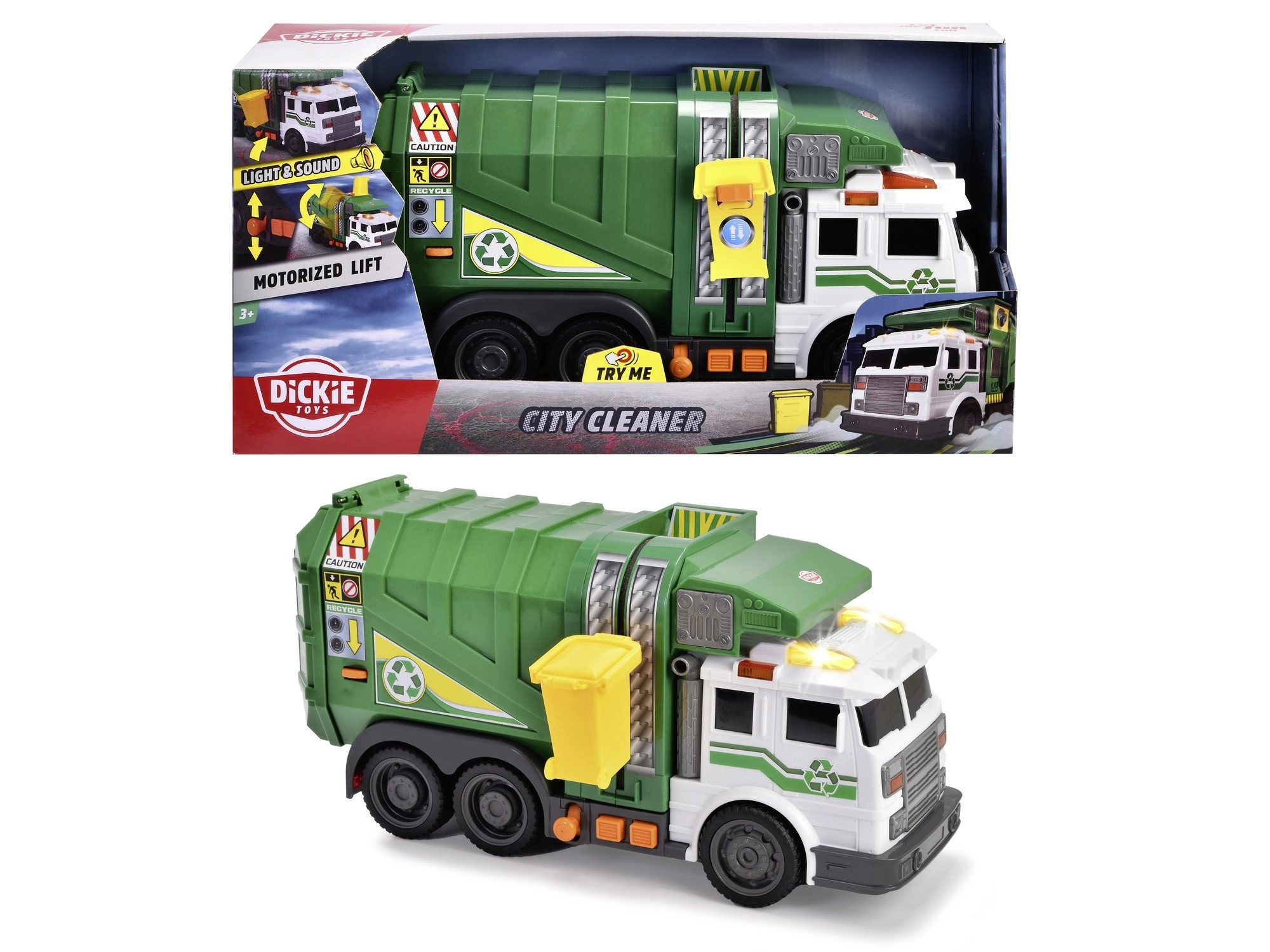 Descoperiți mașina interactivă de gunoi rezistentă și atent detaliată, care imită fidel colectarea reală a deșeurilor. Copiii pot conecta containerul galben, îl pot ridica cu ajutorul macaralei laterale și îl pot goli în benă. Girofarurile și efectele sonore adaugă autenticitate jocului.