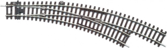 Macaz feroviar detaliat Piko cu reproducerea traverse din lemn în culori fidele și combinația a două arcuri de 30° (R4/R3) pentru direcția dreapta. Comandă manuală cu posibilitatea conectării unui motor comandat de la distanță.