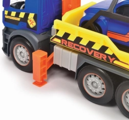 Copiii pot ridica, încărca și fixa vehiculele datorită brațului mobil (macara) și rampei rabatabile inscripționate RECOVERY.
