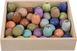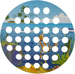 Placa cu diametrul de 22 cm este realizată din lemn durabil și este completată de un suport din hârtie cu motiv de ocean. Setul bogat de elemente permite diverse variante de joc – de la prins pești, la mutat biluțe și până la concursuri contra timp.