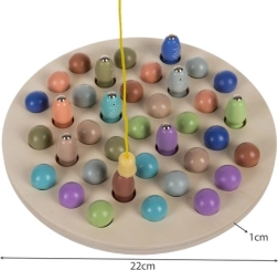 Acest joc magnetic din lemn pentru pescuit peștișori este o alegere excelentă pentru dezvoltarea abilităților copiilor. Ei prind peștișori colorați cu ajutorul undiței magnetice, sortează biluțe și exersează manipularea cu cleștele și bețișoarele. Susține gândirea logică, memoria și îndemânarea, aducând în același timp multă bucurie.