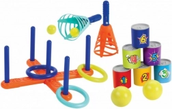 Bucurați-vă de distracție cu Setul de jocuri 3 în 1, care include trei jocuri populare pentru interior și exterior: prinde mingea, inelele pe cruce și doborârea cutiilor. Fabricat din materiale plastice durabile în Franța.