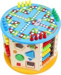 Descoperă cubul educațional din lemn 8 în 1, care oferă ore îndelungate de distracție și, în același timp, dezvoltă motricitatea fină, gândirea logică și recunoașterea culorilor, formelor și numerelor. Traseul cu bile de pe partea superioară, sortatorul de forme, roțile dințate, abacul, ceasul și tabla de joc transformă această jucărie stabilă în alegerea ideală pentru joacă inteligentă.