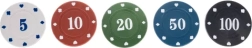 Jetoane colorate cu valori 5–100 și greutate plăcută de cca 4 g, se amestecă excelent și oferă o senzație autentică de joc.
