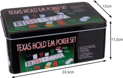 Bucură-te de turnee acasă ca la cazinou. Acest set universal este ideal pentru poker TEXAS HOLD’EM și alte jocuri de cărți. Cutia metalică solidă protejează conținutul și facilitează depozitarea și transportul, iar organizatorul/suportul menține jetoanele și cărțile la locul lor.